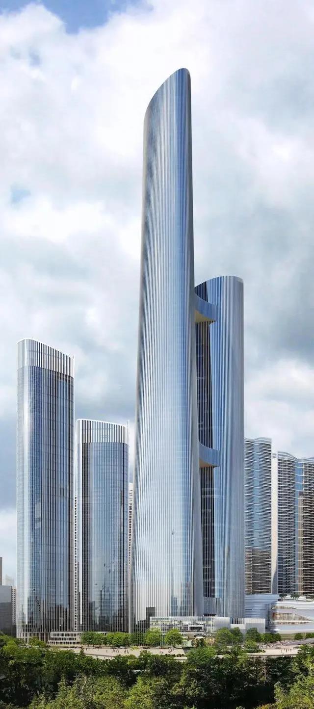 超高层地标建筑是城市发展到一定阶段的产物。在武汉,由KPF建筑事务所设计的复星外滩中心项目坐落于汉正街东片,其由超高层双塔组成,主塔470米,副塔356米,一旦建成,将超越马来西亚吉隆坡石油双塔(452米),成为世界最高的双子塔。