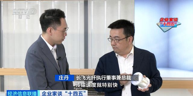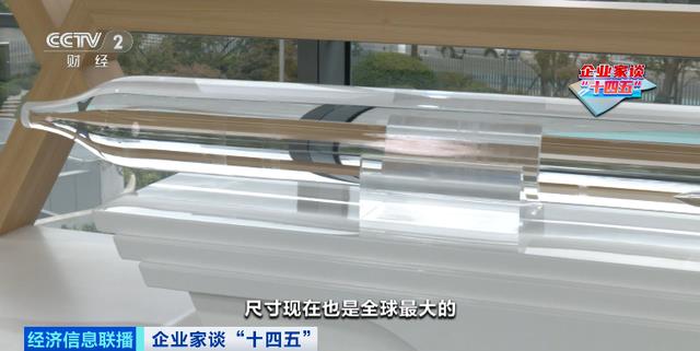 长飞光纤执行董事兼总裁 庄丹:这根预制棒就是“十四五”期间,我们研发做出来的。现在也是全球最大的尺寸,可以拉将近1万公里的光纤,都是通过自主创新实现的。