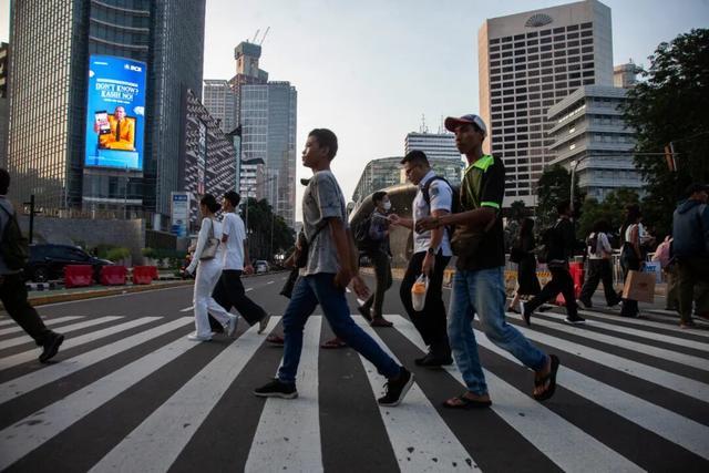 印度尼西亚雅加达,人们穿过斑马线。图片来源:视觉中国