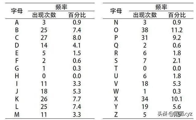 所以,每个字出现的频率相对英文字母来说是很均匀的。