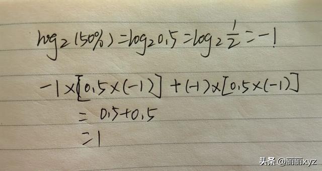 正面的概率和反面的概率都是0.5,log₂0.5=-1.