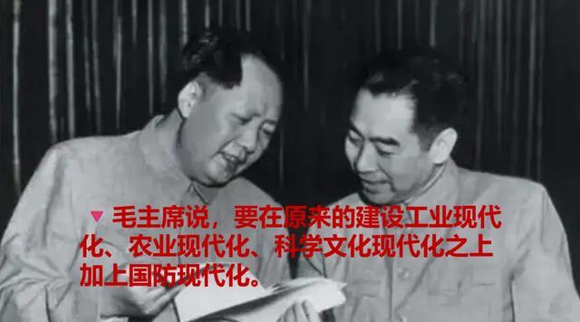 至1957年3月,毛主席第一次提出,要把中国建设成具有现代工业、现代农业、现代科学文化的社会主义国家;又到了1959年底,毛主席说原来要求的是建设工业现代化,农业现代化,科学文化现代化,现在还要加上国防现代化。