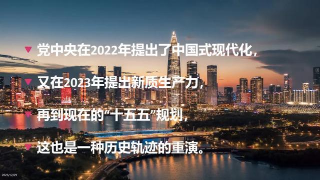 党中央在2022年提出了“中国式现代化”,又在2023年提出了“新质生产力”,然后再到现在的“十五五”规划,这其实也是一种当年的“四化”所经历的历史轨迹的重演,只是现在的中国式现代化不再是“四化”,而是更多更多的现代化,已经成为一个完全自洽的国家体系建设思想了,这当然也是给全世界提供的一个国家建设模板。
