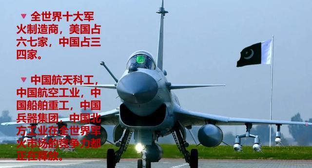 现在全世界的十大军火制造商里,美国占了六七家,中国占了三四家,俄罗斯被我们挤出去的,中国航天科工、中国航空工业、中国船舶重工、中国兵器集团、中国北方工业这些中国军武制造巨头,在全世界军武市场的竞争力都刚刚开始释放。