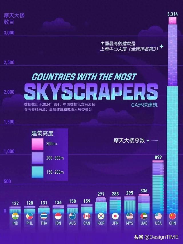 世界上哪个国家摩天大楼最多,而且最高? 在全球化浪潮和日益激烈的城市竞争中,高层建筑建设无可避免地成为大都市塑造国际化形象、彰显经济繁荣的重要手段。全球高楼林立,但巅峰聚集亚洲,中国独占半壁江山。上图数据截至2024年8月,其中,中国数据包含港 ... 世界最高02-25
