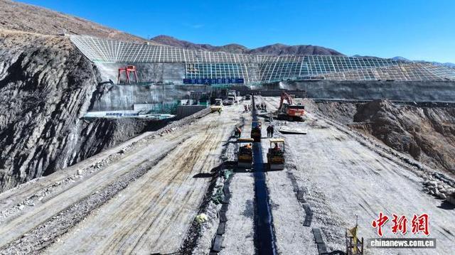 图为世界海拔最高超百米级沥青混凝土心墙坝填筑。中国水电基础局有限公司供图