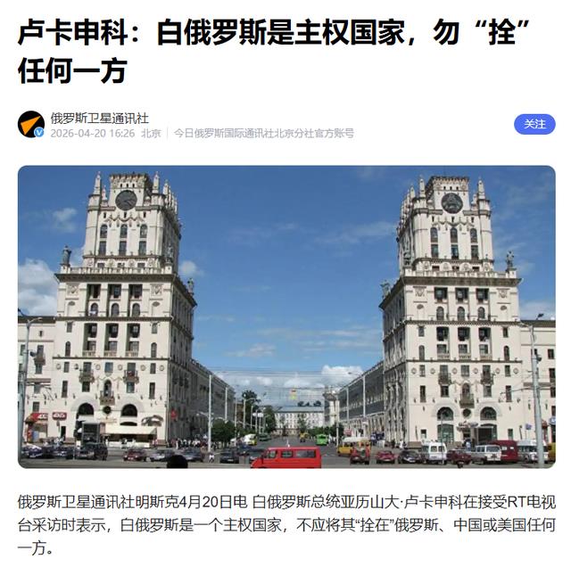 4月份,他再次重申表示,白俄罗斯是一个主权国家,不应将其“拴在”俄罗斯、中国或美国任何一方。