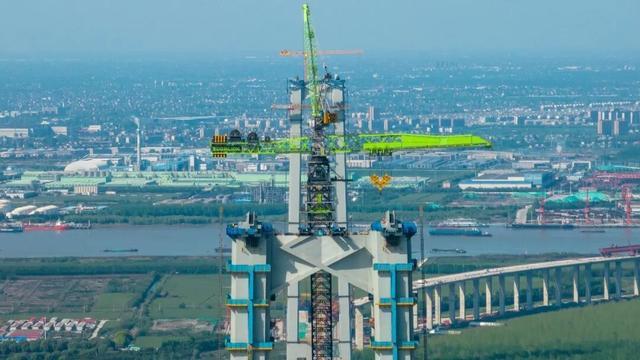 在张家港海事局的全力保障下,大桥南航道桥南、北主塔建设捷报频传:2024年初两座主塔首节段吊装,8月南主塔下横梁合龙,10月北主塔下横梁合龙;2025年4月北主塔中横梁合龙,5月南主塔中横梁合龙,11月北主塔塔柱封顶、上横梁合龙,12月南主塔封顶、上横梁合龙。此次两座主塔的主索鞍相继吊装完成,是张靖皋长江大桥建设的重要里程碑。