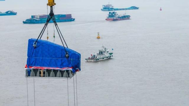4月24日,在张家港海事局的全方位保障下,由江苏省交通工程建设局建设、中交二公局承建的张靖皋长江大桥南航道桥南主塔主索鞍精准吊装就位。至此,这座世界最高悬索桥的南、北双主塔主索鞍全部安装完成,标志着工程建设全面转入上部结构施工新阶段,为后续先导索过江、猫道铺设、主缆架设及钢箱梁吊装等关键工序奠定了坚实基础。