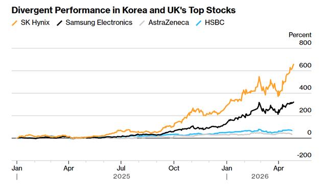 三星电子与SK海力士上涨势头超过阿斯利康等英国主要上市公司