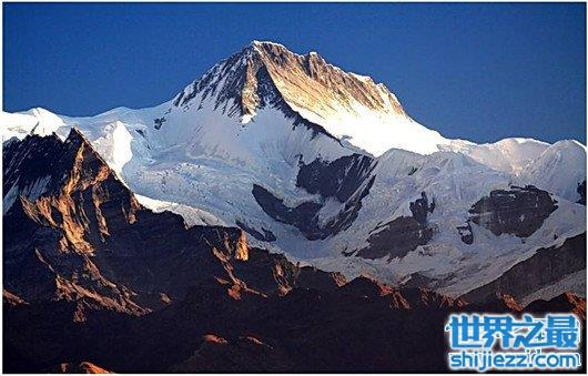道拉吉里峰他也是属于喜马拉雅山脉,它的海拔达到了8167米,他的位置是位于尼泊尔境内,他的首次登顶是在1960年,这座山的气候是极其不稳定的,在夕阳下,稳定的就像没有任何爆发迹象的火山,但一旦爆发,它就会像魔鬼一样掠夺走探险者的生命。