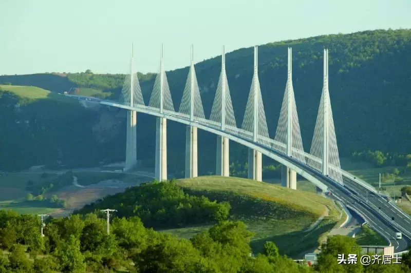 法国南部的米洛高架桥是世界上最高的行车桥,其桅杆高耸入云1125英尺,比艾菲尔铁搭还高。但是这个记录会被2012在墨西哥建成的杜兰戈到马萨特兰之间的Baluarte桥所打破。