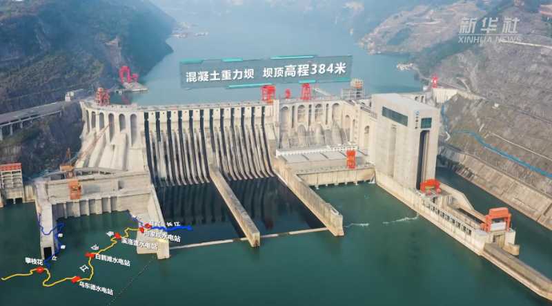 至此,金沙江下游四座超级工程——乌东德水电站、白鹤滩水电站、溪洛渡水电站、向家坝水电站,与长江上的葛洲坝水利枢纽、三峡工程,梯级调度、蓄水释能,实现了长江流域水力资源的最大化利用,将奔涌江水化为绿色电能,共同构成了世界最大清洁能源走廊。