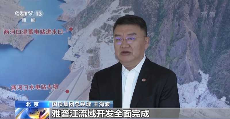 国投集团总经理 王海波:两河口混蓄电站是我国海拔最高的大型混蓄项目。电站安装120万千瓦可逆式机组,加上已建成的300万千瓦的水电常规机组,总装机达到420万千瓦,成为全球最大的混蓄“充电宝”。它可消纳700万千瓦左右的风、光新能源。