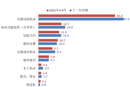 2022年前三季度机床工具产品累计进口情况(亿美元)。来源:中国机床工具工业协会