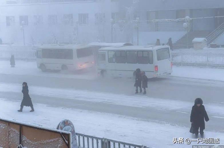 雅库茨克冬天严寒且漫长,经常狂风肆虐,大雪袭城,天地间白茫茫一片!我国的哈尔滨以寒冷著称,素称“冰城”,但和雅库茨克一比,就是小巫见大巫了。这里极端最低温为零下64.4度,全城都建在坚如岩石的永久冻土上面,但表面1.2米厚冻土层冬冻夏融,当地将房屋建在离地1米的桩上,木桩必须深深扎入活动土层之下,以免土地溶融,毁了建筑物。