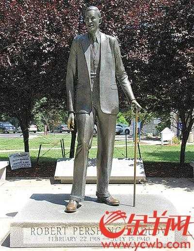 美国伊利诺伊州奥尔顿市学院大街上的那尊铜像就是罗伯特·瓦德罗,高度与他本人去世前2.72米的高度一致。