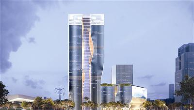 从效果图上可以看到,室内攀岩峡谷“镶嵌”在项目中最高的一幢建筑——150米的超高层塔楼之中。为了模仿出近自然的“峡谷感”,还专门设计出了大幅度的凹凸度。“它的总高度在百米左右,建成后可以供专业的攀岩运动员进行表演使用。”李峰向记者介绍道。