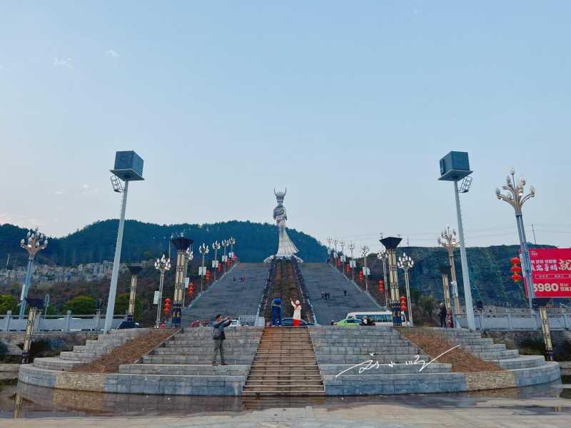 这尊巨型苗族女神雕像所在位置比较高,所以想要欣赏这尊雕像,还需要爬上很多台阶,也算是有了某种参拜女神的仪式感吧?
