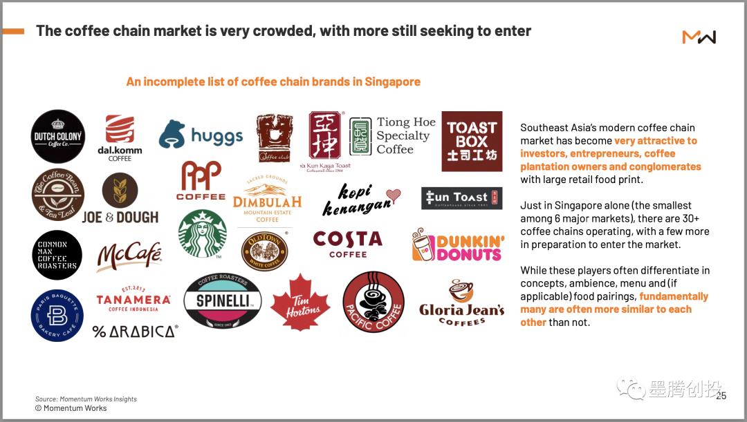但是同时新加坡也是一个拥挤的市场,我们不完全统计了30多个连锁咖啡品牌: