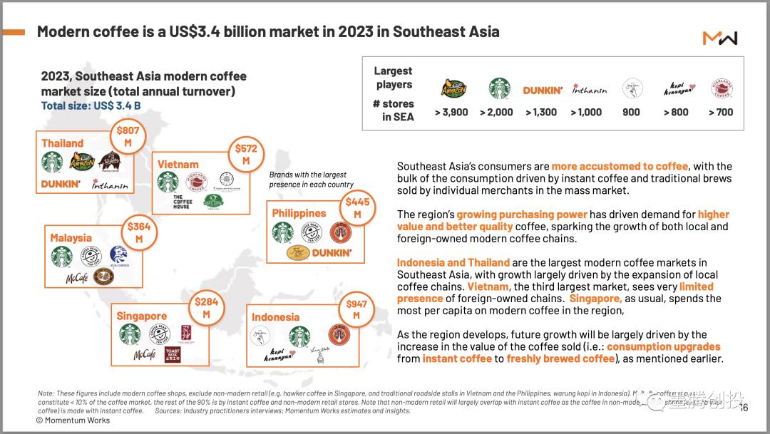 根据墨腾上个月发布的《东南亚咖啡市场》报告,新加坡的连锁咖啡市场规模估算为2.84亿美金,人均消费额位居东南亚第一位: