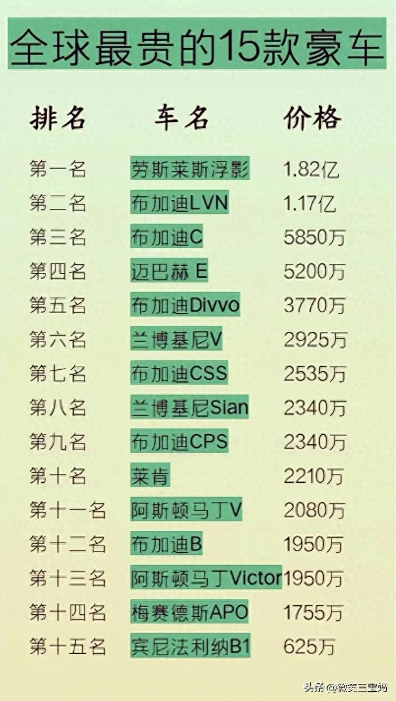 终于有人把全球最贵的15款豪车整理出来了,内容仅供参考。
