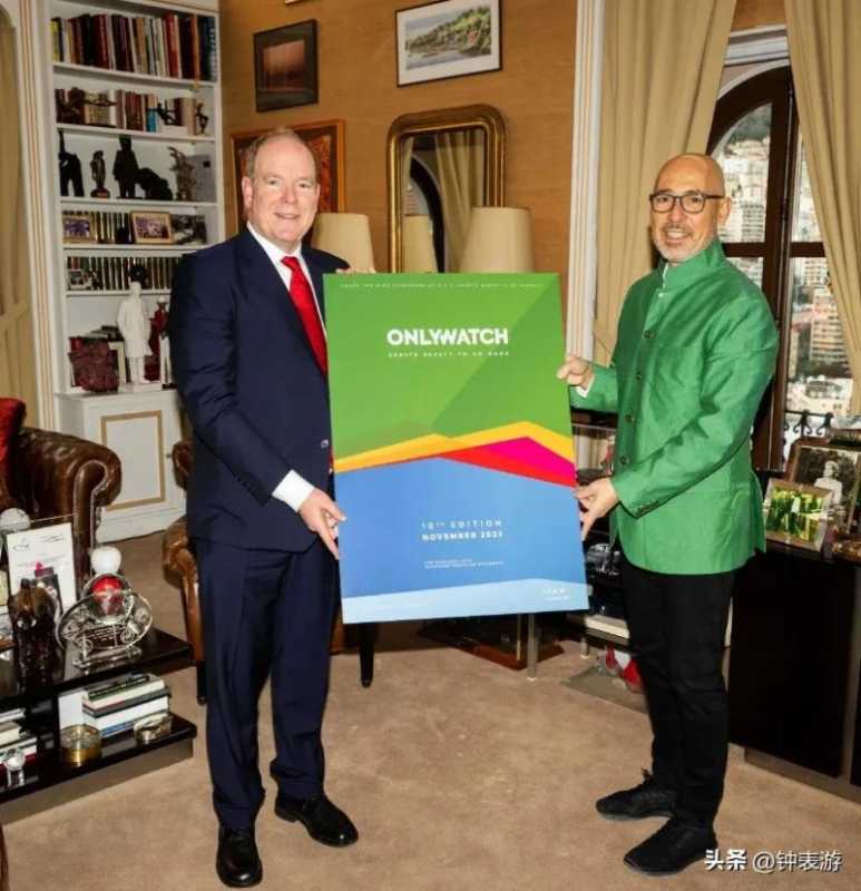 ▲ 一直支持“Onlywatch”慈善钟表拍卖的摩纳哥阿尔伯特亲王和“Onlywatch”创办人Luc一起开启延迟举行的第十届“Onlywatch”