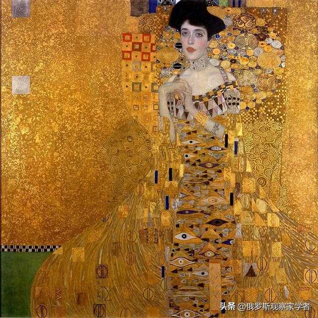 1907 年克里姆特创作这幅肖像时,画中主角阿黛尔是一位富有的工业家夫人,同时也是艺术赞助人。这幅作品是克里姆特 “金色风格” 的巅峰之作,满幅的纹饰流光溢彩,华丽非凡。