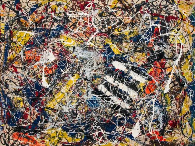 杰克逊·波洛克将帆布放在地上,并通过滴漏、泼溅等方式来创作这幅画,这种革新的绘画方式打破了传统架上绘画的限制,同时也奠定了他作为抽象表现主义运动的领袖地位。