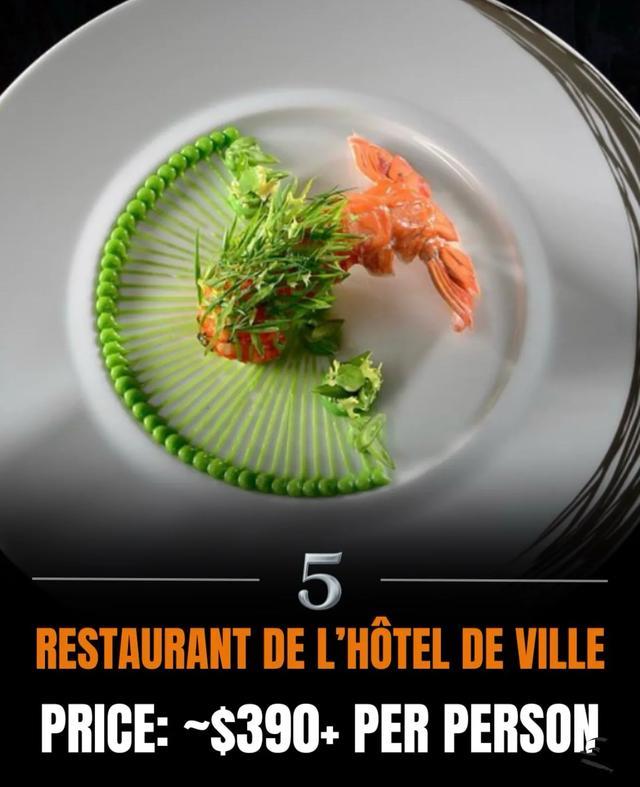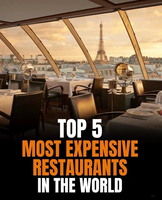 这些餐厅的价格不仅仅反映食材成本,更包含了创新、稀缺性和独家体验。图片中还有一张俯瞰埃菲尔铁塔的巴黎餐厅内景(可能为Le Jules Verne或其他高端餐厅),常被列入类似榜单,但本次Top 5重点是以上五家。