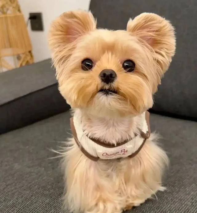 约克夏犬虽然个子小,但胆子挺大,勇敢又忠诚。平时在家表现得很温顺、很乖巧,跟人玩起来又特别热情活泼。