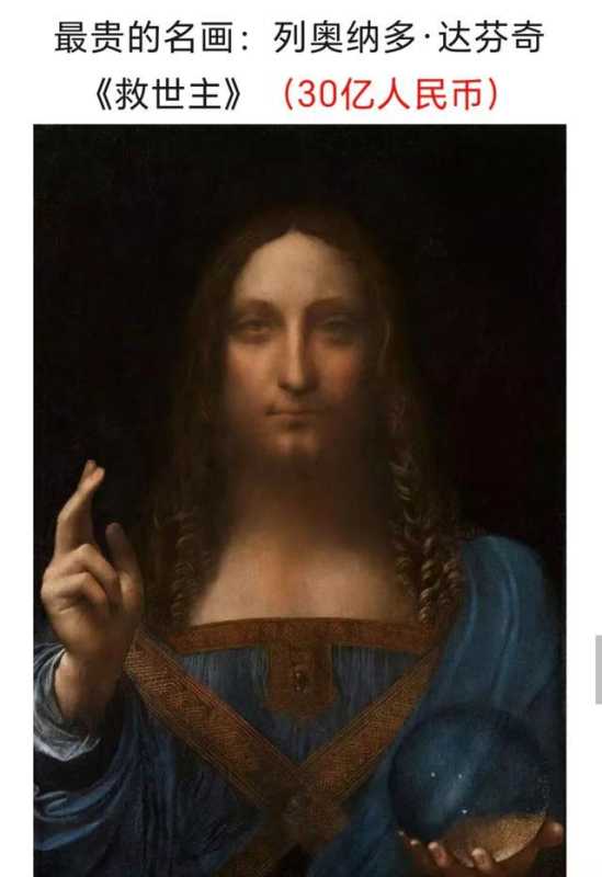 最贵的名画:达芬奇《救世主》(30亿人民币)