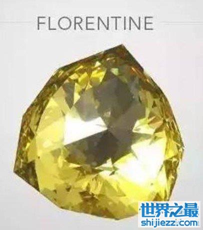 佛罗伦萨钻石源自印度,它的原石重量达到了137.27克拉,颜色是非常呈现的黄色,泛有一点点的绿光。据称钻石在落入奥地利皇室之后,由于皇帝流放,导致钻石被盗,如今也不知所踪,所以它后来的故事也成为了一个谜。