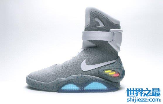 到了现实生活中的2015年,Nike公司巧妙的还原了当年未来场景中的产物,打造了这双鞋王Nike Air Mag,除了拥有各种酷炫吊炸天的灯光,其最大的特点就是可以自动系鞋带,跟电影中一模一样,当然贵加上限量也是其最重要的商标。