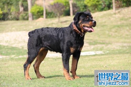 黝黑发光的皮毛,憨厚的性格的大型犬,罗威纳犬。原产地在德国,最开始是作为放牧用的大型狗狗,后来发现这个狗狗的特点,有耐力还很聪明。在二战中,它就派上用场了,作为巡逻犬、保卫犬。价格在六千美元最高。