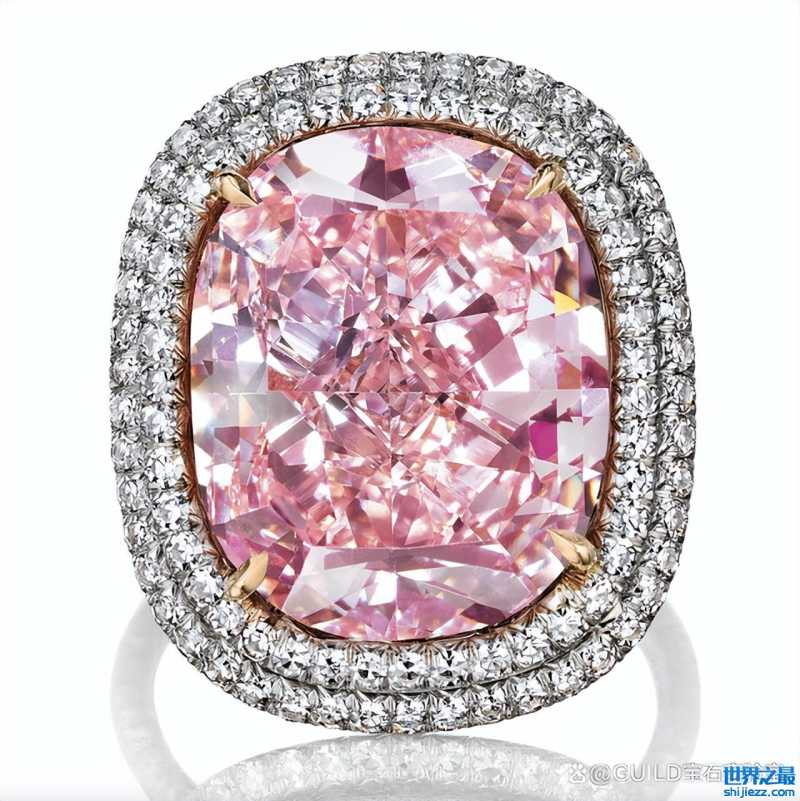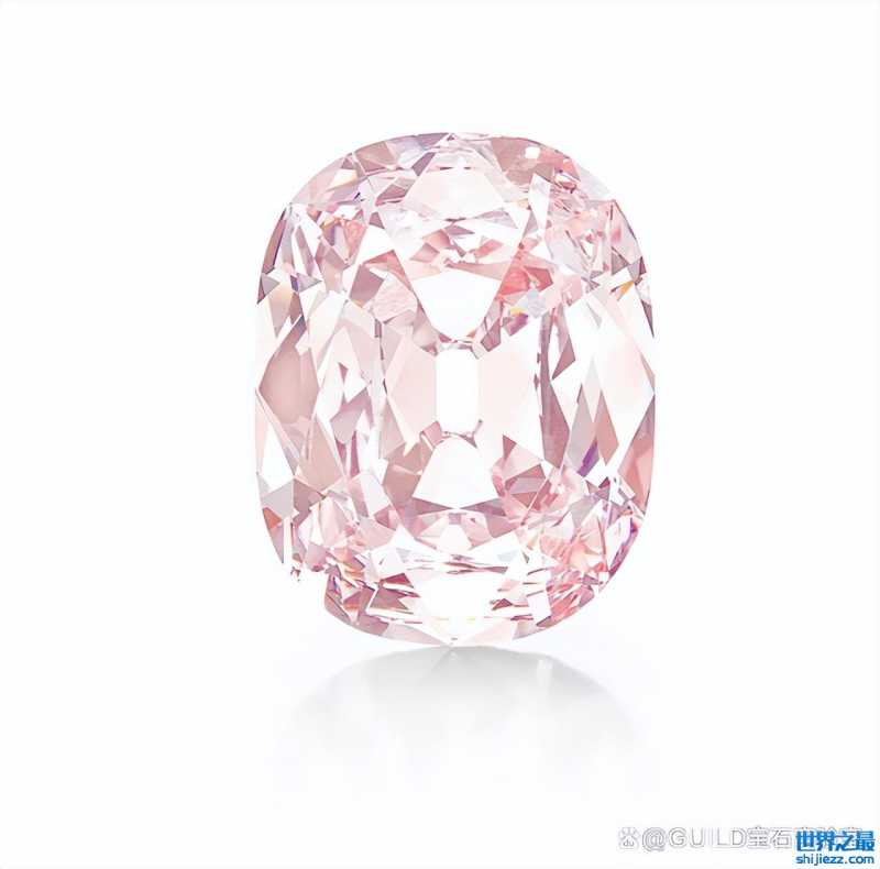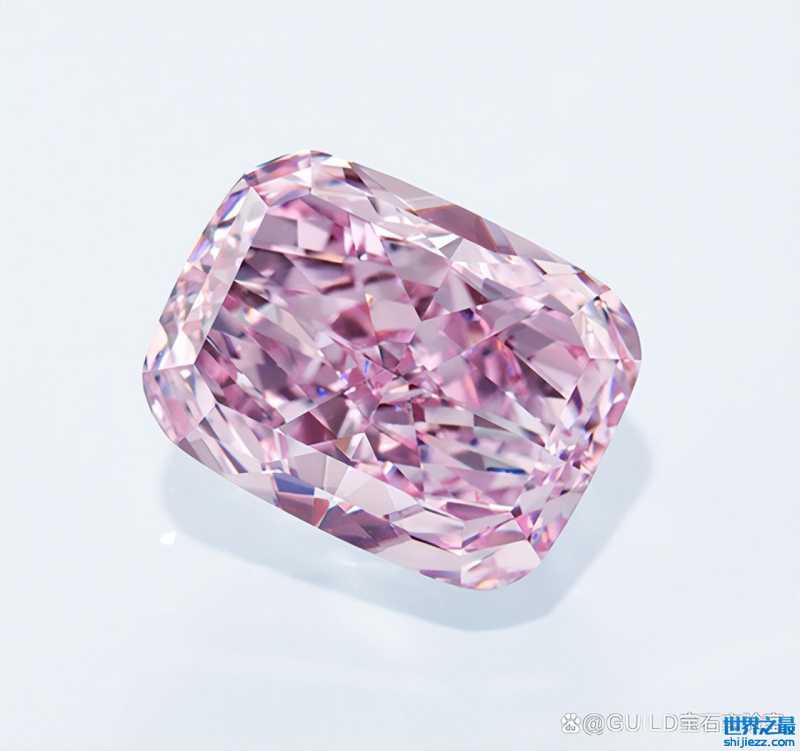 这颗粉钻极为罕见,更是公开拍卖史上,同类钻石中最大的,也是迄今为止最大的一颗枕形切割粉钻,颜色饱和度非常出色,没有任何常见的紫、橙、棕等副色调。