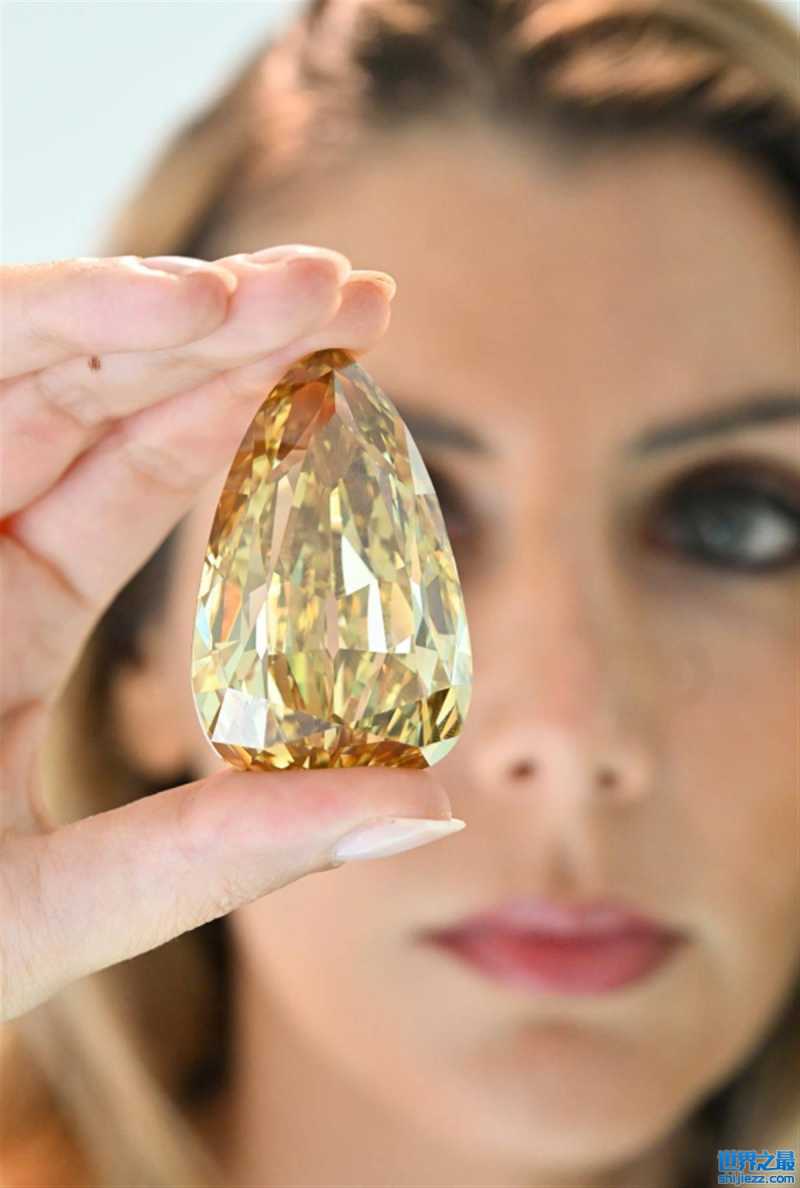 近日,一颗重达303.1克拉的黄色梨形钻石在阿联酋迪拜苏富比拍卖行展出。这颗黄钻被美国宝石学院评定为现今全球最大的无瑕疵钻石,市场估价约为1500万美元、约合人民币1亿多元。