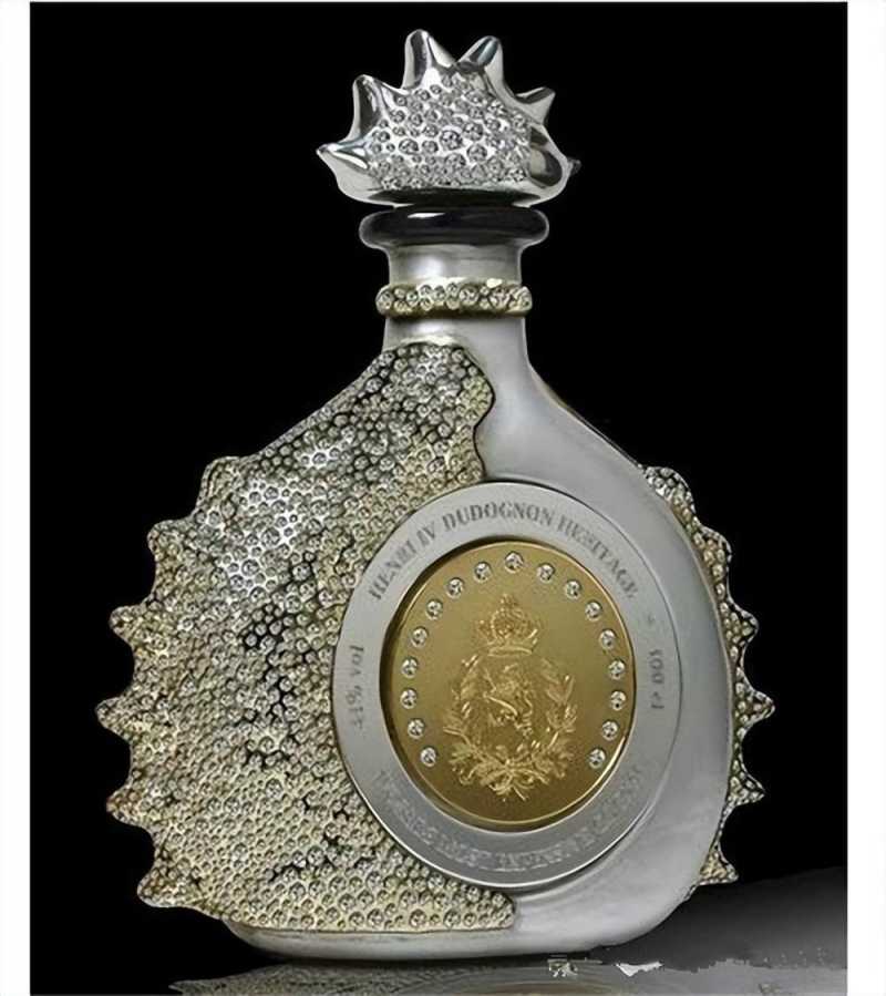 第三名,亨利40度多浓大香槟干邑白兰地,这瓶酒的推出是为了纪念波兰王朝的创建者亨利四世,陈酿时间超过百年,全世界仅此一瓶。瓶身表面由黄金、铂金打造,还镶嵌上了6500克真钻,规格为一升,价格高达1381万人民币,喝掉一口就相当于损失了三四线城市的一套房。