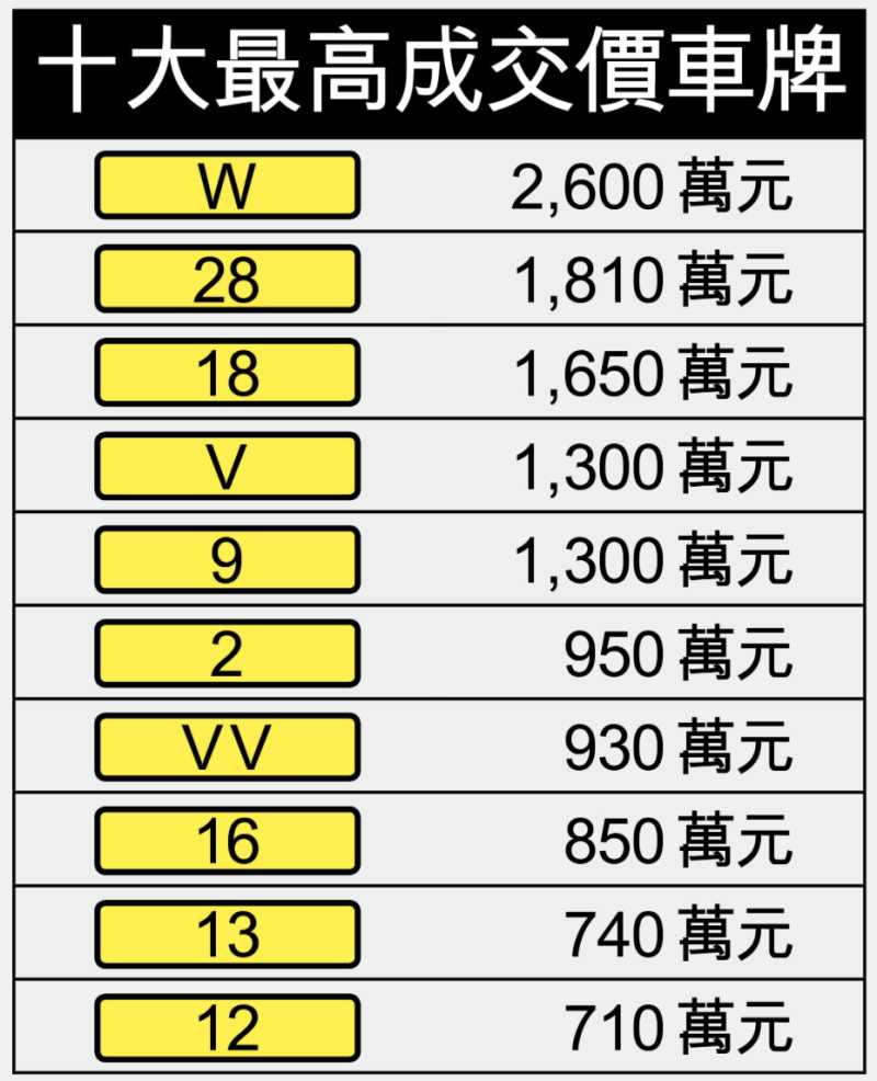 2021年,“W”车牌号在香港以2189万的价格成交,再次刷新了香港车牌拍卖记录。至今,“W”车牌号都保持着国内最贵车牌的记录。另外,香港数字1-10的车牌,除了“1”号车牌还属于官方之外,其余车牌号都被私人买走了。