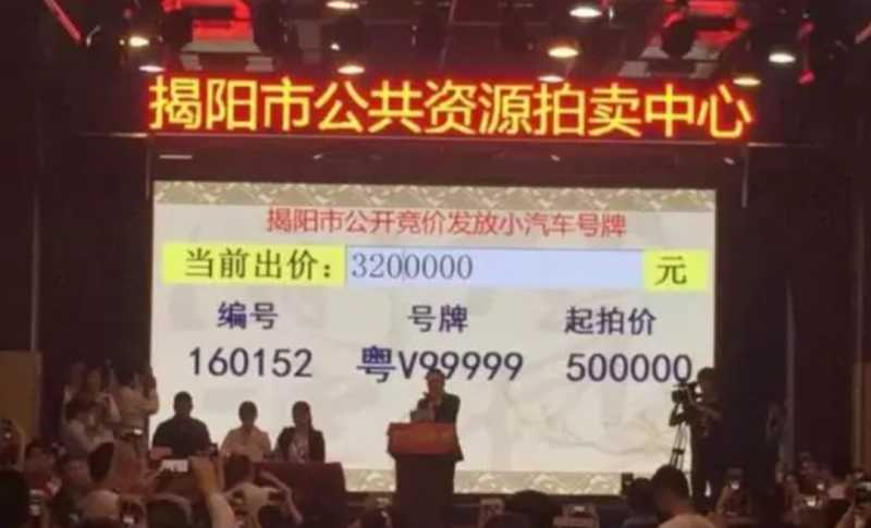最后来看看内地的车牌价格,目前使用的92式车牌最高拍卖价为320万。不过,中国最贵车牌的开头,不是京A、沪A、粤A、粤B,而是广东揭阳的粤V。2016年,粤V99999车牌号以320万成交,而且整个竞拍过程用时仅1分46秒。一般人在现场恐怕至少得思考几分钟后才敢报价,而真正的有钱人还没等你回过神来,就已经把车牌拍走了!