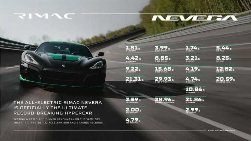 这款车的制造商是位于克罗地亚的Rimac公司,该公司于2021年与Bugatti形成了合资企业,专注于高端超级跑车的研发和生产。对于Nevera的表现,公司创始人Mate Rimac表示:"从我记事起,我就一直以敬畏的目光看待那些创造历史、推动性能提升的汽车,他们将革命性的技术带上了道路。这就是我从一开始就在做的事情——开发新技术,重新定义可能性。"