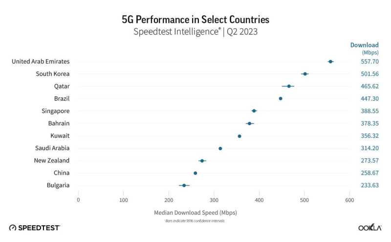 Ookla 5G速度测试:阿联酋在2023年第二季度拥有全球最快的5G网络