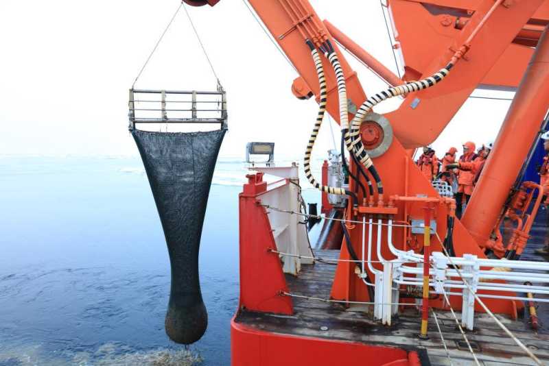 这是2023年7月26日在“雪龙2”号上拍摄的底栖生物拖网出水瞬间。新华社记者 魏弘毅 摄