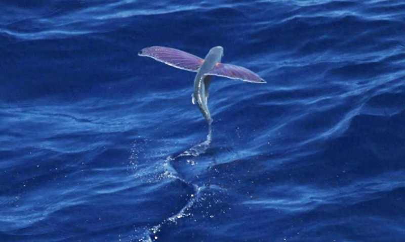 飞鱼以70公里/小时的速度游弋,居住在大西洋和太平洋的亚热带水域。它们以滑翔出水面的独特方式而闻名,最高滑翔时间可达30秒。这些飞鱼生活在海洋的阳光带,深度约200米,可见光充足。虽然它们不会飞得太远,但足以躲避捕食者。飞鱼是水中的濒