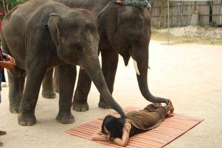 而且大象按摩也成为了东南亚一种旅游项目,那就是游客慵懒的躺在宽阔的场地里,一名大象在主任的带领下,用它的大脚给游客踩背按摩,感觉还挺享受的。