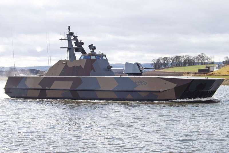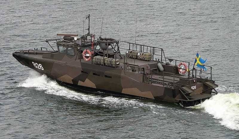 这是瑞典的一种快速军用突击艇,它可以在浅海沿岸水域以高达40节的速度行驶。这艘15.9米长、排水量20.5吨的艇的航程为440公里,造价为2200万美元。它可以搭载23人,装备有三挺布朗宁M2 HB重机枪、一挺mk-19榴弹发射器和四枚水雷。
