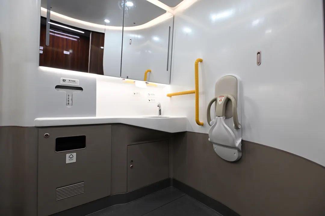 CR450-BF样车卫生间配备宝宝椅,且部分无障碍卫生间为无接触式卫生间