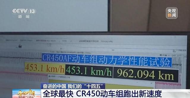 试验期间,CR450动车组跑出了动车组单列时速453公里、相对交会时速896公里的最新纪录。目前,CR450动车组正在沪渝蓉高铁开展运用考核。