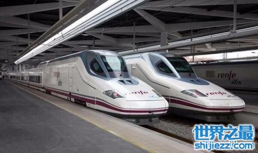 西班牙高铁Talgo它的速度达到了350km每小时。就连它的最高时速也在350km,这被称为世界上最快的鸭子。因为它的头部设计特别像一个鸭子,这也许是为了减少空气的阻力而设计的。它被世界上最快的火车之一。
