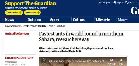 步频是博尔特10倍!研究人员发现世界上速度最快蚂蚁